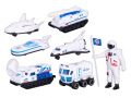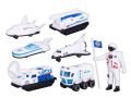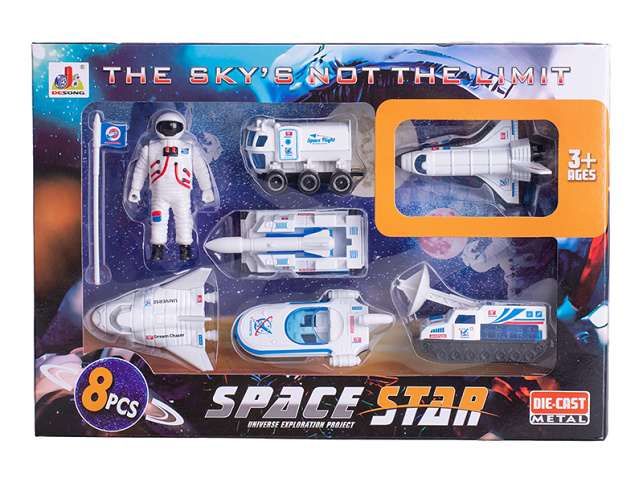 Vesmírná vozidla 6-8,5cm kov volný chod 6ks s astronautem 7,5cm v krabičce