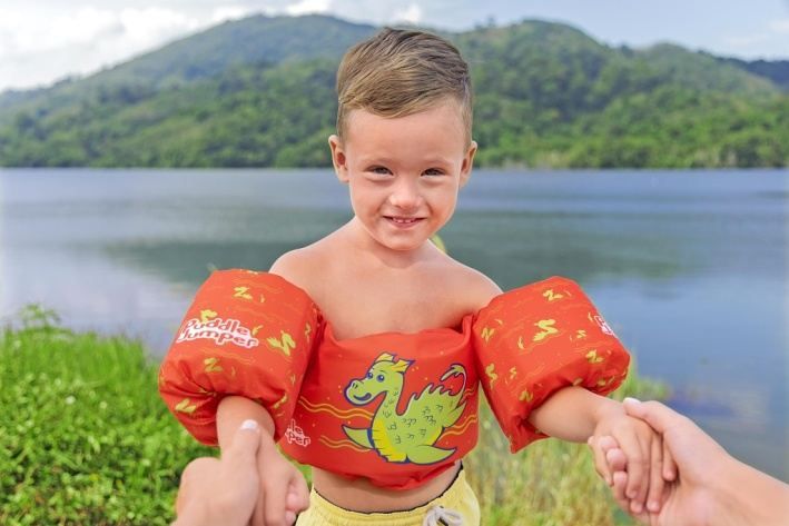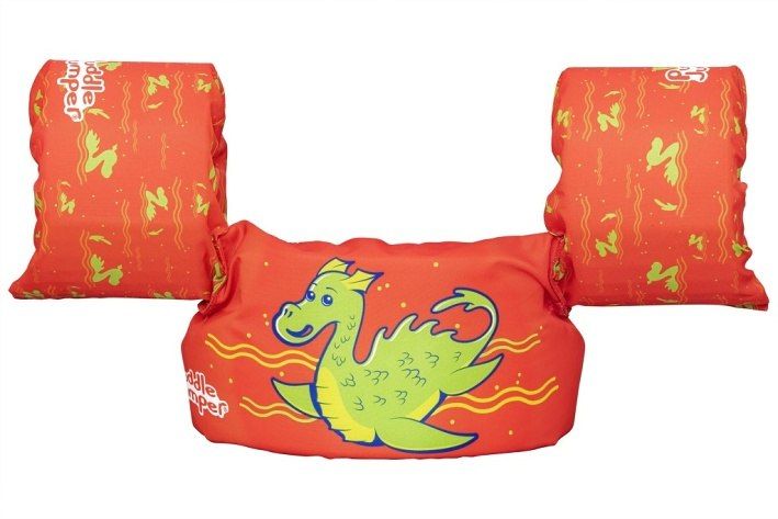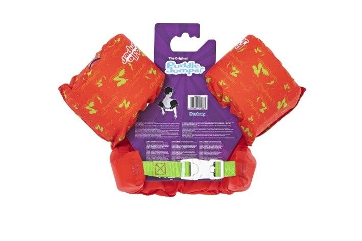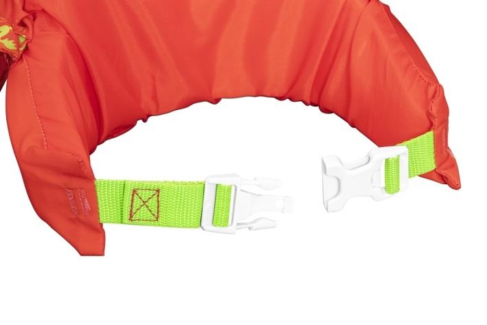 Vesta Monster s rukávky je dětská plavecká vesta navržená pro děti ve věku od 2 do 6 let, která nabízí bezpečnost a pohodlí při pobytu ve vodě. Vesta má výraznou jasně oranžovou barvu a veselý motiv zeleného mořského netvora na přední straně, což zaujme malé plavce a zároveň usnadňuje dohled nad nimi. Vesta je vybavena dvěma nafukovacími rukávky, které zajišťují stabilitu a pomáhají dětem udržet se nad vodou. Tento model je vyroben z polyesterové tkaniny, která je odolná a příjemná na dotek, a je vyplněn pěnovými vložkami, které poskytují dostatečný vztlak. Díky tomu je vesta vhodná jak pro začátečníky, tak i pro děti, které už mají s plaváním zkušenosti. Nosnost vesty je určena pro děti s váhou 15–30 kg a obvod hrudníku je 56 cm, což odpovídá přibližně zmíněnému věkovému rozmezí. Vesta je opatřena zadní přezkou s nastavitelným zeleným popruhem, který umožňuje snadné a bezpečné upevnění na těle dítěte. Přezka je navržena tak, aby si ji dítě samo nedokázalo rozepnout, což přispívá k jeho bezpečnosti během vodních radovánek. Díky této konstrukci vesta pevně sedí a zajišťuje tak maximální komfort i ochranu během pohybu ve vodě. Celkově je plavecká vesta Monster s rukávky praktickým a barevným pomocníkem pro malé plavce, kteří se učí bezpečně pohybovat ve vodě. Její kombinace pěnových vložek a nafukovacích rukávků zajišťuje stabilitu a snadné plavání, zatímco veselý design netvora dodává produktu hravý a přátelský vzhled.
