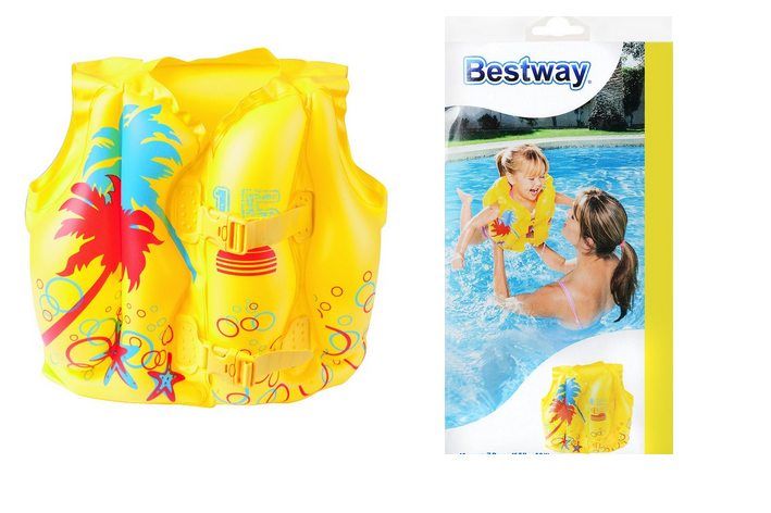 Dětská nafukovací vesta Bestway Tropical. Krásná, barevná nafukovací vesta s obrázkem, je plavecká pomůcka pro Vaše dětičky. Vesta s nastavitelným zapínaním pomůže dětem při plavání. Může být také užitečná jako záchranný prostředek v lodičce.