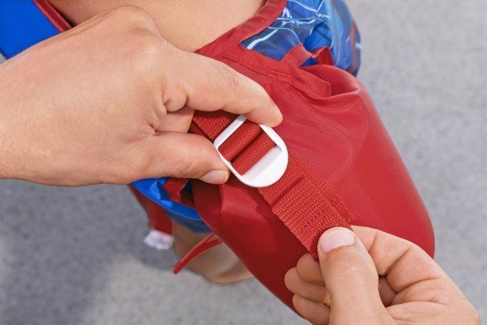 Plavecká vesta Spiderman s rukávky je navržena pro děti ve věku 3 až 6 let, které váží mezi 19 a 30 kilogramy a mají obvod hrudníku přibližně 56 cm. Tento dětský plavecký pomocník je vyroben z odolné polyesterové tkaniny, která je pevná a zároveň příjemná na dotek. Vesta je vybavena integrovanými pěnovými vložkami, díky nimž poskytuje dostatečný vztlak a zajišťuje bezpečí během pobytu ve vodě. Rukávky jsou nafukovací a připevněné na ramenech, což zvyšuje stabilitu a podporuje správnou polohu dítěte při plavání. Design této vesty je inspirován populárním superhrdinou Spidermanem, což je vidět na přední části vesty, kde se nachází výrazný a barevný potisk hlavní postavy v akčním postoji. Barevné provedení kombinuje červené rukávky a lemování s modrým podkladem a motivem pavučiny, čímž se zvyšuje atraktivita produktu pro malé fanoušky Marvelu. Díky výraznému designu je vesta snadno rozpoznatelná a přitažlivá pro děti. Vesta je vybavena praktickými nastavovacími popruhy po stranách i pod bříškem, které umožňují bezpečné a pohodlné uchycení na těle dítěte. Plastové přezky jsou pevné a zároveň snadno ovladatelné, což usnadňuje nasazování a sundávání vesty. Rukávky mají navíc vlastní nastavitelné pásky, které zajišťují jejich správné umístění na pažích a zabraňují sklouznutí během plavání. Tento systém zajišťuje, že vesta pevně drží a dítě se v ní může bezpečně pohybovat i ve vodě. Celkově je plavecká vesta Spiderman s rukávky vhodná pro začínající i mírně pokročilé malé plavce, kteří potřebují spolehlivou podporu při vodních hrách. Kombinace bezpečnostních prvků, kvalitních materiálů a atraktivního designu dělá z tohoto produktu praktickou a zároveň zábavnou pomůcku pro všechny malé vodní dobrodruhy.