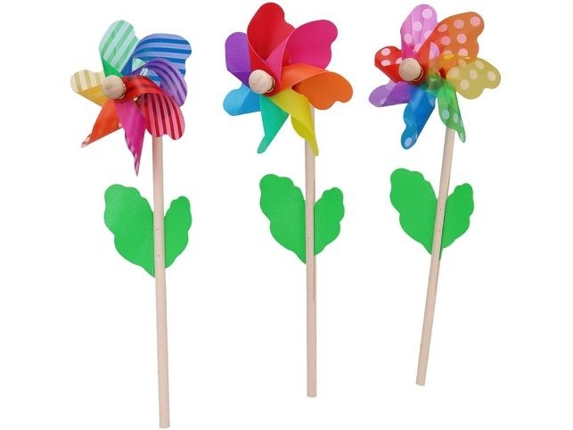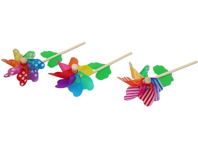 Větrník 12 cm, dřevěná hůlka, 3 druhy