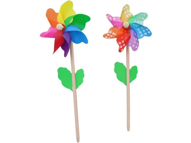 Větrník 14 cm, dřevěná hůlka, 3 druhy