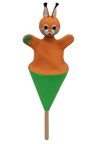 Textilní kornoutový maňásek, ovládaný dřevěnou tyčkou, kterou schováte celou postavičku do kornoutu. Hračka i dekorace.