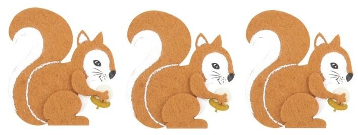 Veverka z filcu na kolíčku 8 cm, 3 ks