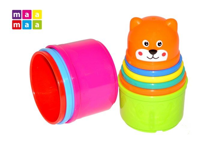 pyramida se skládá ze setu různě velkých a různě barevných kelímků