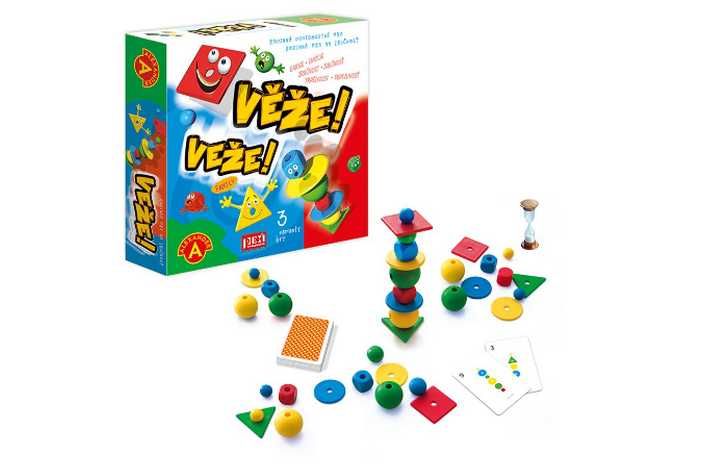 Vyrovnej co nejvyšší věž z různě tvarovaných dílů ve 3 vzrušujících soutěžích. Drž balanc co to jde! Rodinná hra pro 2–4 hráče na zručnost, pevnou ruku i nervy. Věk 6+