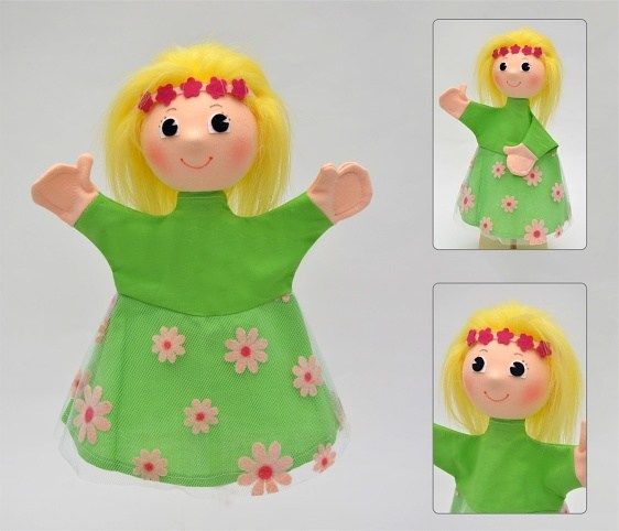 Maňásek na ruku. Víla s věnečkem na hlavě, která pomáhá dětem s psaním "ě", ve skupinách "bě, pě, vě".