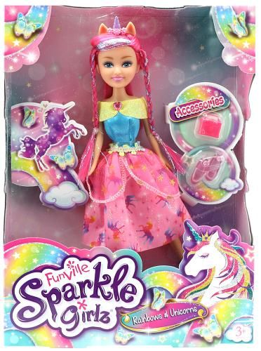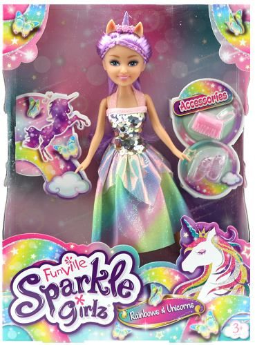 Víla duhová s rohem Sparkle Girlz s doplňky