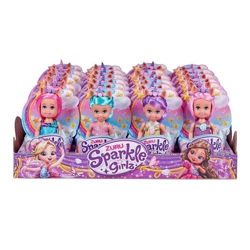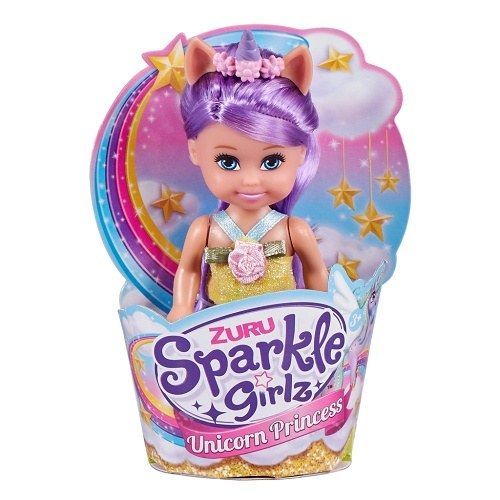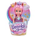 12 cm velká víla Sparkle Girlz má překrásný roh jako jednorožec. Panenka je uložená v obalu, který připomíná kornoutek.