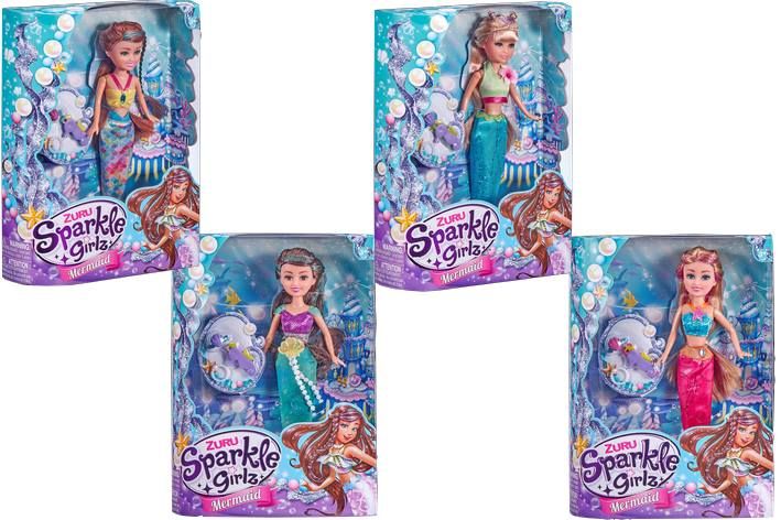 Mořská víla Sparkle Girlz, která má překrásně barevné šatičky. Je 28 cm veliká. V sadě se nachází hřebínek a náramky.