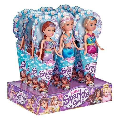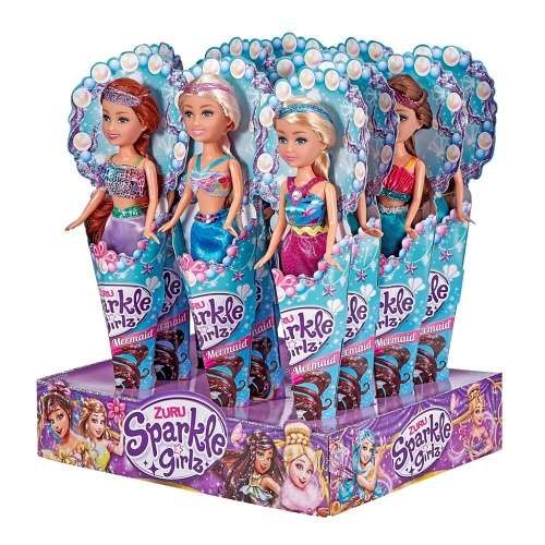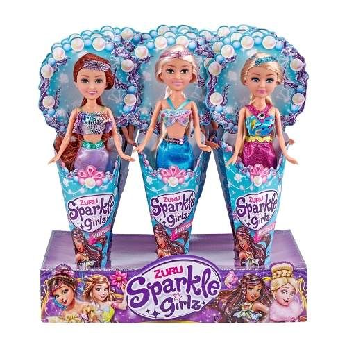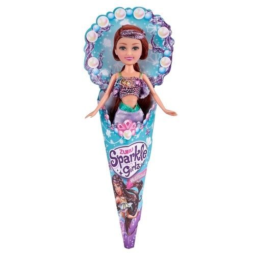 28 cm velká mořská víla Sparkle Girlz má překrásnou ploutev. Panenka je uložená v obalu, který připomíná kornoutek.