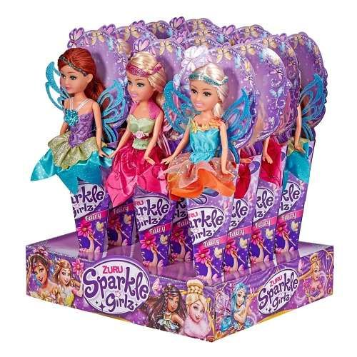 27 cm velká víla Sparkle Girlz má nádherná křídla a překrásné šatičky. Panenka je uložená v obalu, který připomíná kornoutek.