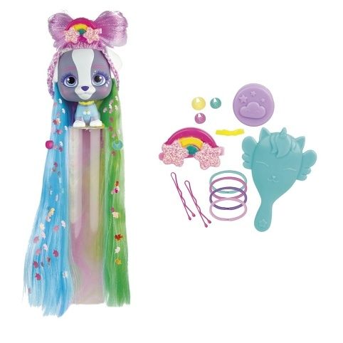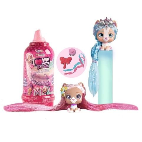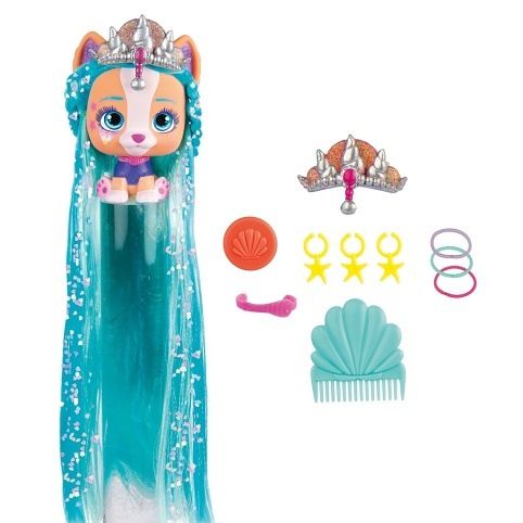 Nová série oblíbených VIP Pejsků s třpytivými vlasy! 6 stylových mazlíčků ve 2 provedeních se stylingovými doplňky. 3 jednoduché zábavné kroky: Umyjte, objevte a vysušte. Jedinečné balení – ve tvaru láhve se šampónem. Každé balení obsahuje 8 doplňků: 4 základních příslušenství (společné pro všechny): kadeřnické křeslo, hřeben, vlasové pásky, náhrdelník, zástěrka + speciální příslušenství (jedinečné pro vytvoření specifického účesu, na příklad: třpytky, změna barvy, žehlička, natáčky, nástavce, nálepky, vlasová bižuterie a korunka) + sběratelský list. Nejmódnější mazlíčci se super dlouhými vlasy vám dávají příležitost vytvořit tisíce účesů. VIP PETs jsou stylová, přátelská a okouzlující. Můžete vidět, jaká postava je uvnitř, ale účes, šaty a doplňky jsou skryty.