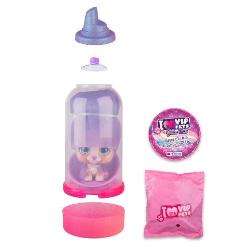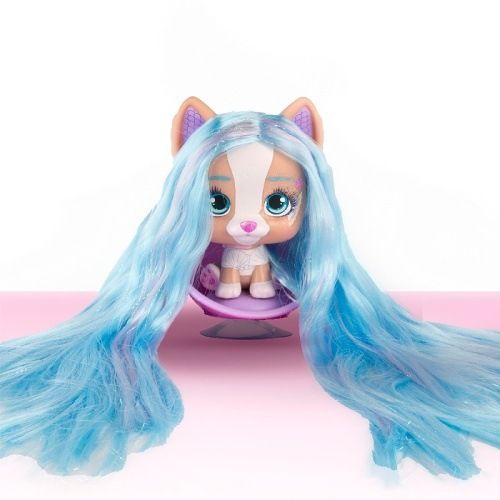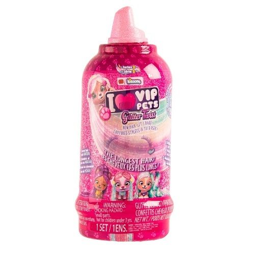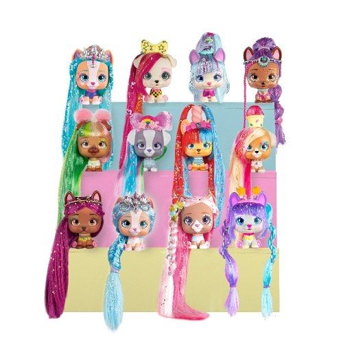 Nová série oblíbených VIP Pejsků s třpytivými vlasy! 6 stylových mazlíčků ve 2 provedeních se stylingovými doplňky. Tři jednoduché zábavné kroky: umyjte, objevte a vysušte. Jedinečné balení – ve tvaru láhve se šampónem.Každé balení obsahuje 8 doplňků: 4 základních příslušenství (společné pro všechny): kadeřnické křeslo, hřeben, vlasové pásky, náhrdelník, zástěrka + speciální příslušenství (jedinečné pro vytvoření specifického účesu, na příklad: třpytky, změna barvy, žehlička, natáčky, nástavce, nálepky, vlasová bižuterie a korunka) + sběratelský list.Nejmódnější mazlíčci se super dlouhými vlasy vám dávají příležitost vytvořit tisíce účesů. VIP PETs jsou stylová, přátelská a okouzlující. Můžete vidět, jaká postava je uvnitř, ale účes, šaty a doplňky jsou skryty. Při nákupu není možné předem zjistit o kterou postavičku se jedná, je to překvapení.