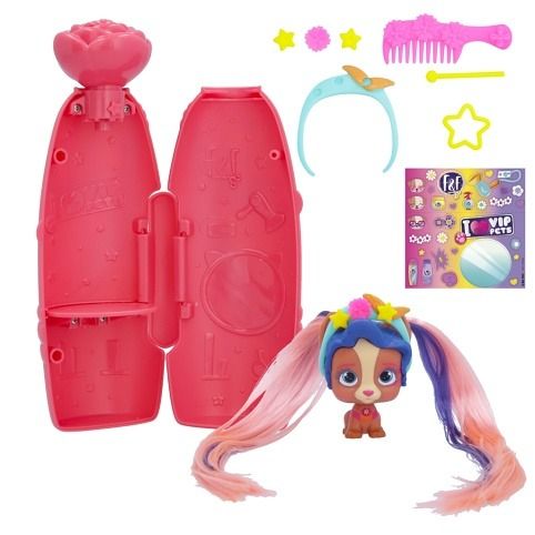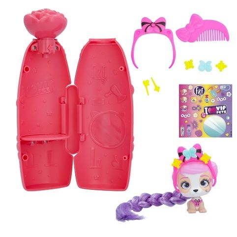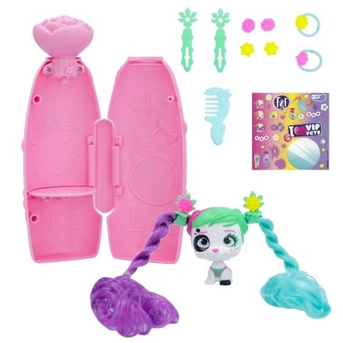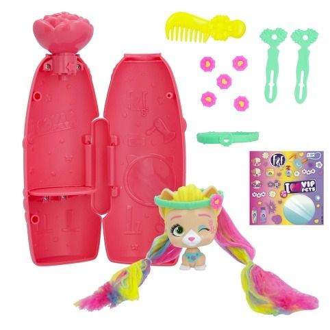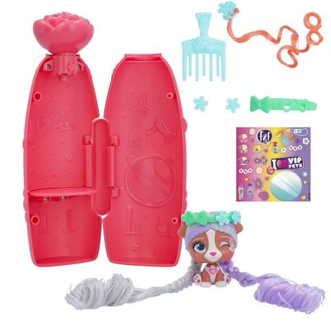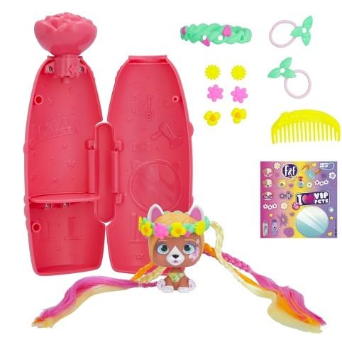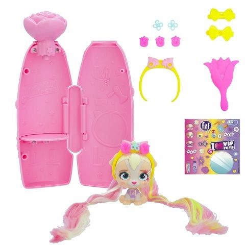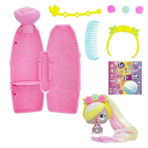 VIP Pets mini fans s novým jarním tématem a voňavými vlasy! Speciální nový obal se otevírá způsobem vystřelení konfet – k otevření balení je potřeba použít tlačítko ve tvaru malého květu – tím se konfety uvolní. Všechny nové doplňky s jarní tematikou, 6+ překvapení: 1 mini VIP pet, 1 hřeben, 2 doplňky do vlasů s květinovým dekorem, 1 sběratelský list, 1 arch s nálepkami, 1 mini hrací souprava do vlasů. Vzácný pejsek z této série obsahuje o 1 doplňek navíc. Smíchej a slaď květinové doplňky a vytvoř si květinovou korunu na míru.
