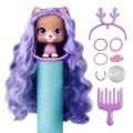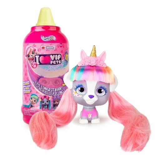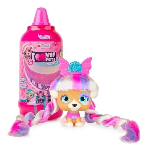 12 stylových mazlíčků se stylingovými doplňky. 3 jednoduché zábavné kroky: Umyjte, objevte a vysušte. Jedinečné balení - ve tvaru láhve s vlasovou pěnou. Každé balení obsahuje 8 doplňků: 5 základních příslušenství (společné pro všechny): kadeřnické křeslo, hřeben, vlasové pásky, náhrdelník, zástěrka + speciální příslušenství (jedinečné pro vytvoření specifického účesu): třpytky, změna barvy, žehlička, natáčky, nástavce, nálepky, vlasová bižuterie a korunka + sběratelský list.Nejmódnější mazlíčci se super dlouhými vlasy vám dávají příležitost vytvořit tisíce účesů. VIP PETs jsou stylová, přátelská a okouzlující. Můžete vidět, jaká postava je uvnitř, ale účes, šaty a doplňky jsou skryty. Nelze vybrat konkrétní druh, dodáváme dle skladové dostupnosti.