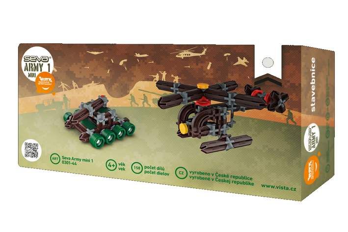 Stavebnice pro kluky Army MINI 1 obsahuje 158 dílků, ze kterých si můžete sestavit vojenskou techniku např. malý tank, vrtulník nebo letadlo.