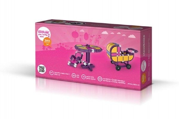 "Maminko, tatínku, co si dáme do domečku?" Postávím Vám všechno co budete chtít. Židličku, stoleček, vanu a kočárek pro sestřičku. Stavebnice Seva pro dívky midi obsahuje 180 dílků, ze kterých si můžete sestavit např.: kočárek, postýlku a mnoho dalšího nezbytného vybavení, každého pořádného domečku nejen pro Seváčky.