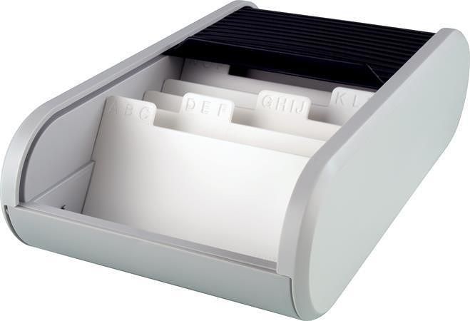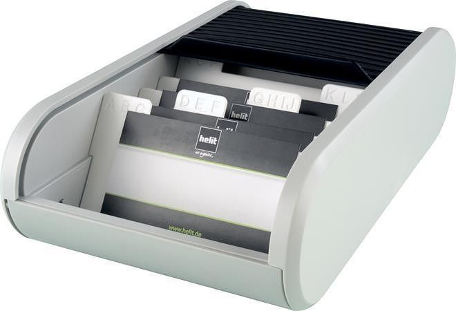 Vizitkář s rolovatelným krytem, na 300 ks, HELIT, šedý