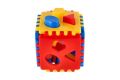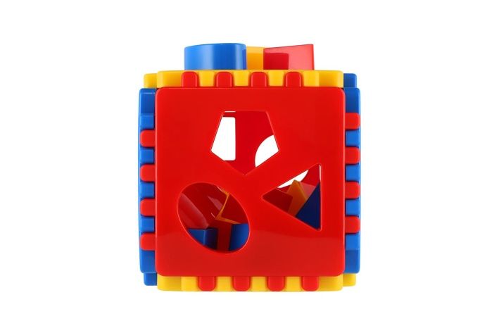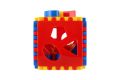 Modročervená plastová kostka má oddělitelné stěny a děti si ji mohou skládat a rozkládat. Pokud je kostka složená, vkládají si děti jednotlivé tvary do příslušných otvorů. Na této didaktické hračce si děti trénují jemnou motoriku a trpělivost. Rozměry kostky jsou 13 x 13 x 13 cm. Vhodné pro děti od 6 měsíců.