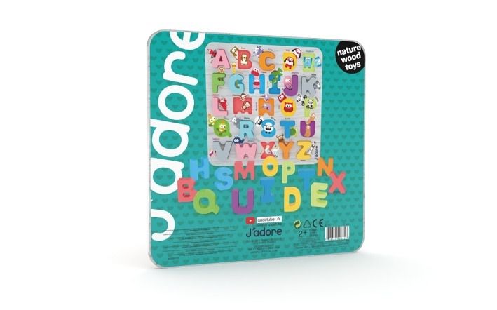 J`adore je řada vzdělávacích hraček pro nejmenší, vyrobených z ekologicky udržitelného dřeva, bez chemikálií. Produkt je vhodný pro děti od 2 let. Dřevěná vkládačka ve veselých barvách pro děti pro první seznámení s písmenky. Jednotlivé písmena se umisťují do vyfrézovaných obrysů na dřevěnou desku.