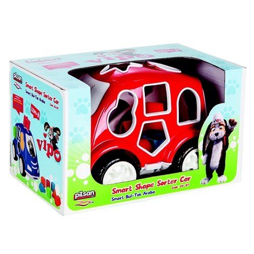 Vkládačka ve tvaru veselého autíčka s 5 různými tvary. Výborná pomůcka pro rozvoj motoriky dítěte. Možno využít i u vody, na pláži. Velikost výrobku 21×14 cm a výška 13 cm.