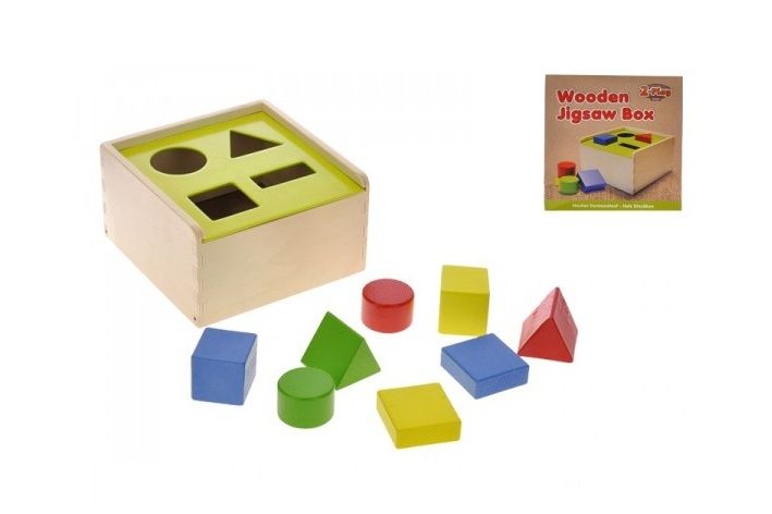 Nová a veliká vkládačka z řady je vyrobena z hladce opracovanéhodřeva. Jednotlivé dílky mají krásnou světlou barvu.Po vložení do správného otvoru mohou děti jednotlivé dílky vysvoboditz krabičky pouze odtažením víka do strany. Toto provedení zajistí, žebudou muset přemýšlet při vkládání, ale i při tom, jak dostanoukostičky zpět, protože nepůjdou jednoduše vyklepat. Vkládačky, díkyrůzným tvarům dílků, pomáhají při rozeznávání tvarů a rozvojimotoriky dítěte. Doporučený věk: 12m+ Rozměr: 18×18×10cm