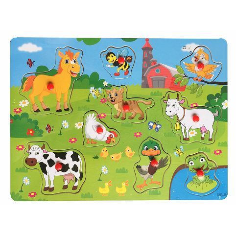 Dřevěná vkládačka s motivem roztomilých domácích zvířátek pro děvčata a chlapce. Vkládačka je vyrobena z kvalitního dřeva a obsahuje 9 dílků s úchyty.