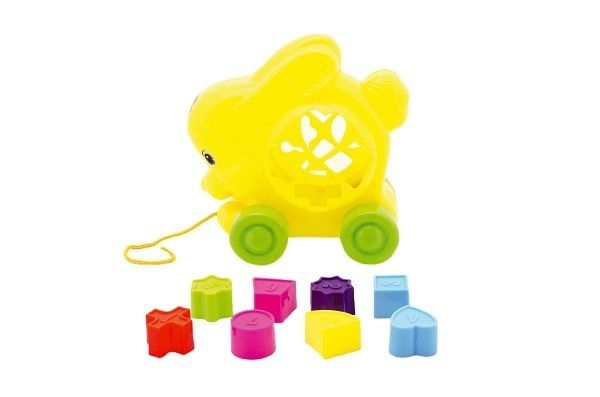 Tahací vkládací zajíc je ideální hračkou pro nejmenší. Vhodné od 3 let.