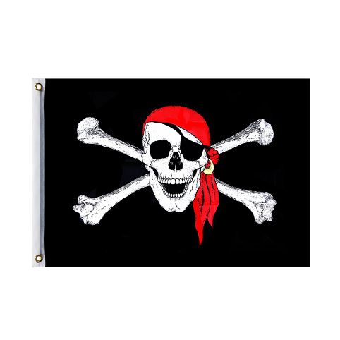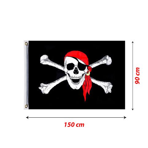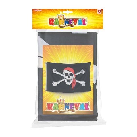 Parádní vlajka s děsivým, pirátským motivem pro skutečné piráty! Na vlajce najdeš i na koncích stužky, které slouží pro uchycení a také díru na tyč. Rozměry vlajky činí 90 x 150 cm. Paráda!