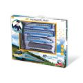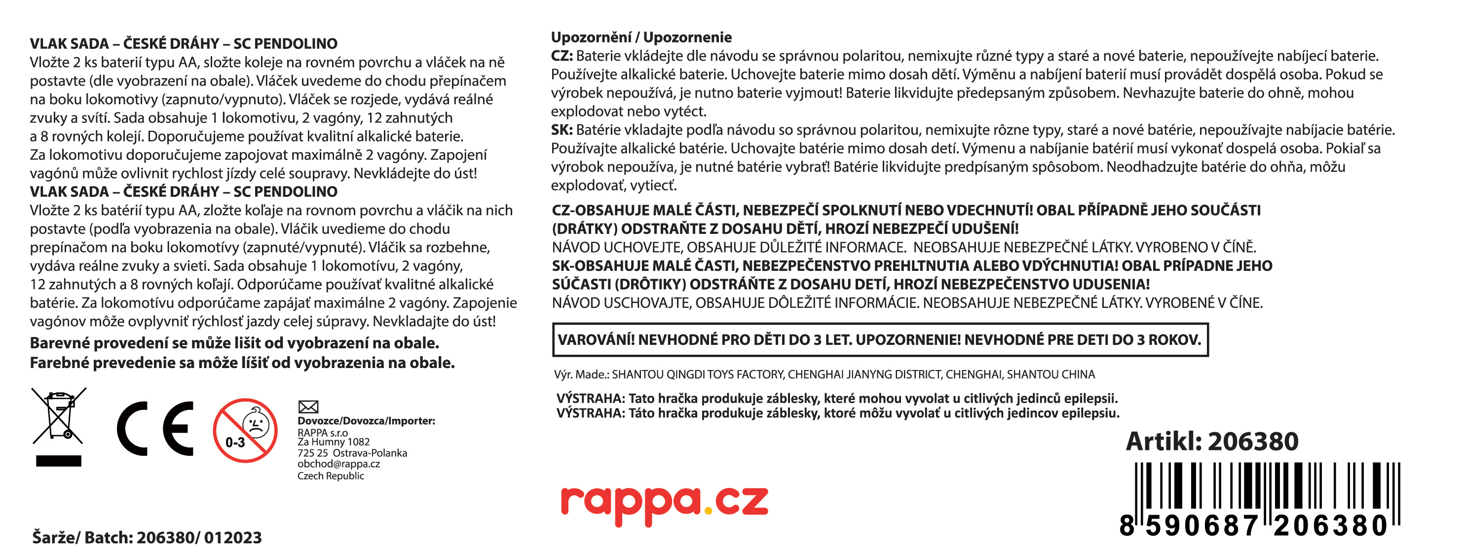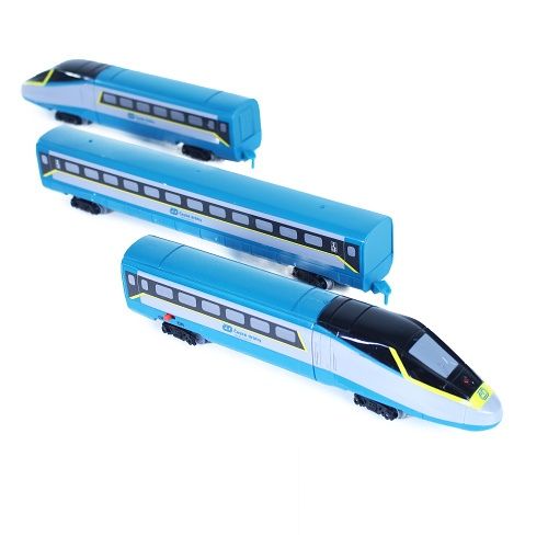 Sada z kolekce Naše železnice obsahuje lokomotivu, vagón a zadní lokomotivu bez pohonu, 12 zahnutých a 8 rovných kolejí. Lokomotivy měří na délku 26 cm a vagón 30 cm. Lokomotiva jezdí, vydává zvuk a svítí díky 2 ks AA baterií (nejsou součástí balení). Celková dráha kolejí měří 4,8 m. Velikost koleje rovné je 23 cm a zahnuté 25 cm. Tuto novinku lze kombinovat s vlakem České dráhy i RegioJet. Koleje a výhybky je možné dokoupit samostatně. Touto originální vlakovou sadou Českých drah určitě potěšíte všechny milovníky a nadšence železnic.