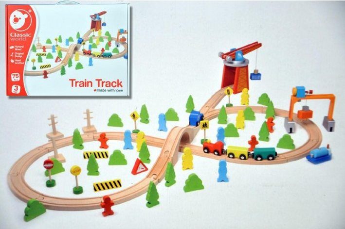 Balení obsahuje: 1 ks Vlak dřevo s dráhou + doplňky 75 ks v krabici.