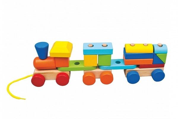 Dřevěný vláček - tahací hračka, která pomáhá dětem s jejich prvními krůčky a cvičením rovnováhy. Kostky jsou navržené tak, aby byly bezpečné a vhodné pro malé ručičky. Díky nim tato sada poskytuje nekonečně mnoho zábavy se stavěním, řízením vlaku a učení tvarů a barev.