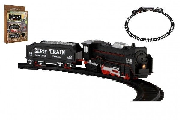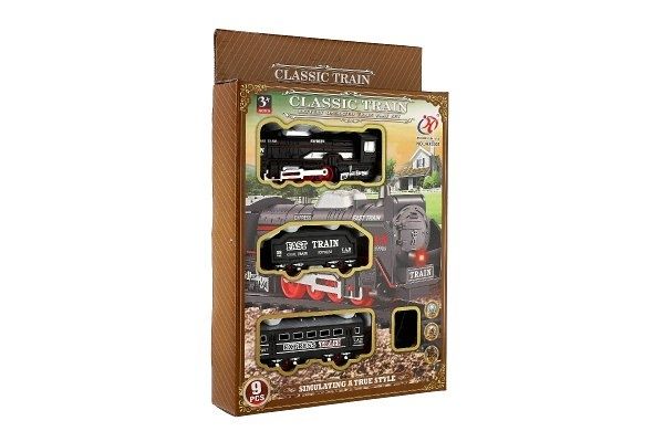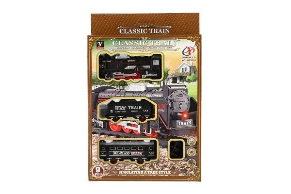 Vlak/Lokomotiva + 2 vagóny s kolejemi 9ks plast na baterie se světlem v krabici 21x31x5cm