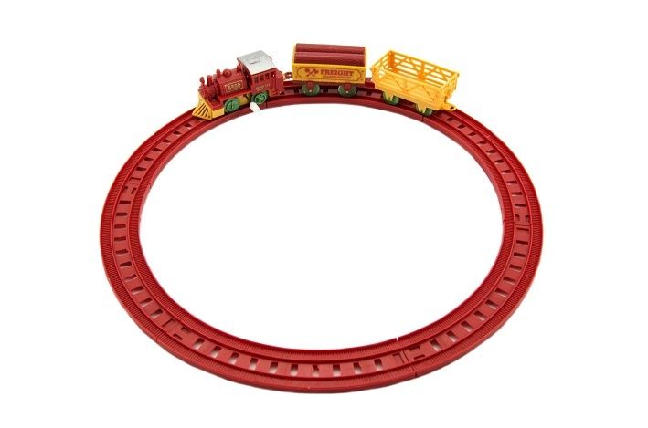 Vlak na klíček + 2 vagónky s kolejemi plast 7cm