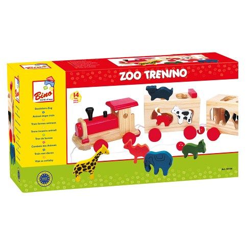 Tahací dřevěná mašinka na kolečkách se dvěma vagonky s otvírací mříží pro spoustu zvířátek. Ale pozor, každé zvířátko může do vagonku jen jedním otvorem a musíte najít ten správný! Rozměry: 66 x 11 x 10,5 cm, 14 dílů.