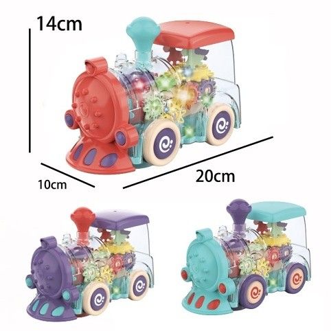 Transparentní barva. Světelný a zvukový efekt. Otočení o 360 stupňů. Jasná světla a milá hudba. Odolná a průhledný plášť. Viditelná převodová struktura. Na baterie: 3x AA (nejsou součástí balení)