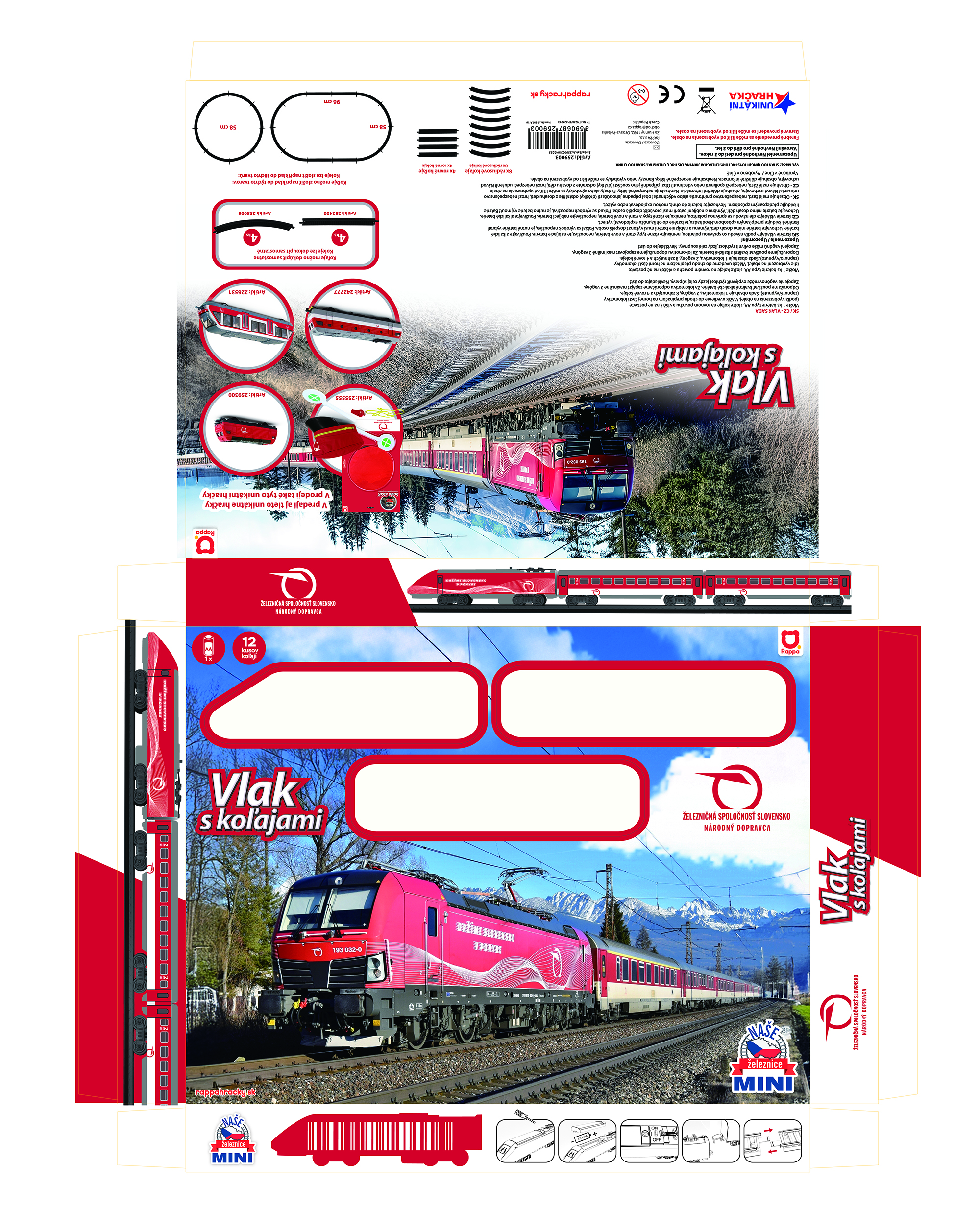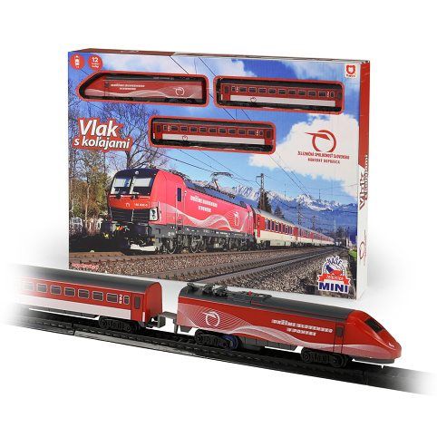 Milujete cestování vlakem? Tak sestavte koleje, postavte na ně lokomotivu, připojte vagóny a vzhůru za dobrodružstvím! Originální vlak Slovenské dráhy obsahuje lokomotivu a 2 vagónky, 8 zahnutých a 4 rovné koleje. Lze vytvořit kolejiště až do velikosti 96 x 58 cm. Rozteč kolejí je 1,4 cm. Lokomotiva měří na délku 14 cm a vagón 13,5 cm. Lokomotiva jezdí na 1 ks AA baterie (není součástí), na střeše lokomotivy vypínačem ON/OFF (zapnuto/vypnuto) uvedete vlak do chodu. Vlak Slovenské dráhy MINI lze kombinovat s vlakem RegioJet MINI a Vlakem Pendolino MINI.