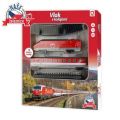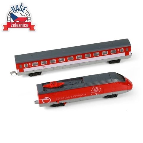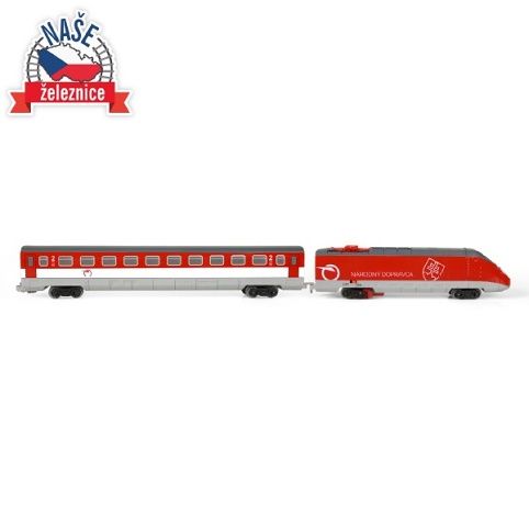 Sada Železniční společnost Slovensko obsahuje lokomotivu, vagón, 12 zahnutých a 6 rovných kolejí. Lokomotiva měří na délku 23,5 cm a vagón 30 cm. Lokomotiva jezdí, vydává zvuk a svítí díky 2 ks AA baterií (nejsou součástí balení). Lze vytvořit kolejiště až do velikosti 147 x 121 cm (cca 4,4 m). Rozteč kolejí je 2,1 cm. Velikost koleje rovné je 23 cm a zahnuté 25 cm. Tuto novinku lze kombinovat s vlakem České dráhy, Pendolino a RegioJet. Touto originální vlakovou sadou drah určitě potěšíte všechny milovníky a nadšence železnic.