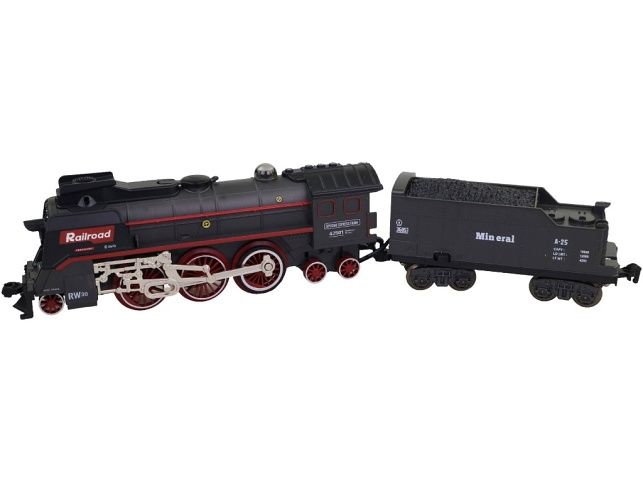 Vlaková souprava, parní lokomotiva, na baterie, světlo a zvuk, 92 x 92 cm