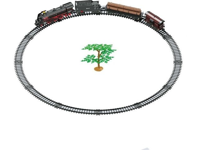 Vlaková souprava, parní, na baterie, světlo, zvuk, 48 kusů, 92,5 x 92 cm