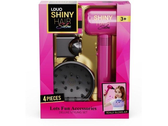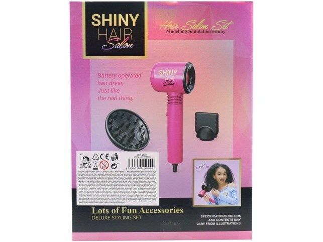 Vlasové studio fén je ideální hračka pro holky od 3 let. S rozměry 20 x 7 x 26 cm nabízí skvělou zábavu. Tento fén je vyroben z kvalitního plastu a dodává se v okenním boxu. Pro provozování jsou zapotřebí 3 baterie typu AAA, které nejsou součástí balení. S tímto vlasovým studiem fén se vaše malá princezna bude cítit jako skutečná kadeřnice.
