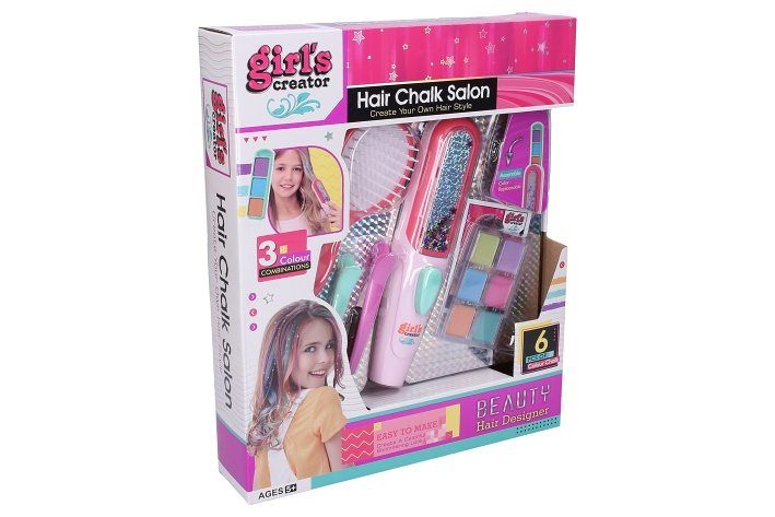 Vlasové studio set. Obsah balení - kartáč, sponky, křídy na vlasy, aplikátor barev.
