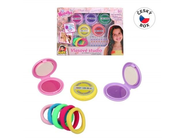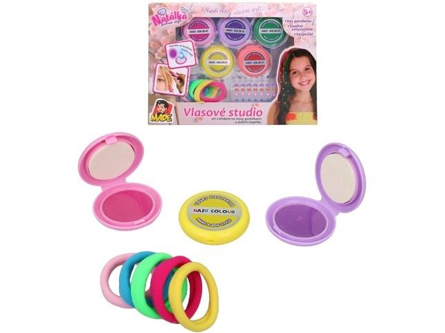 Vlasové studio, set s barvami na vlasy, gumičkami a doplňky, 26,5 x 3 x 20 cm