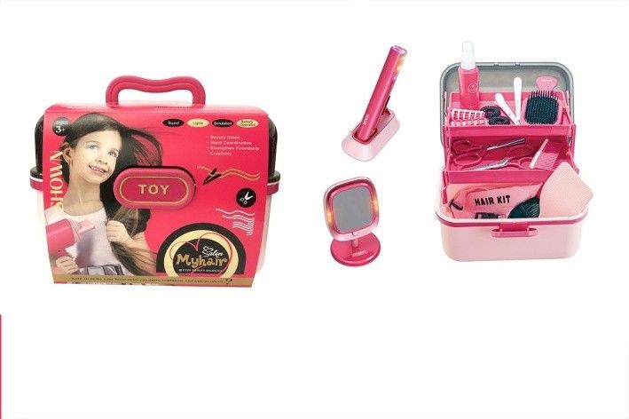 Měj své vlastní kadeřnictví! Tento set obsahuje vlasovou žehličku a zrcadlo se světelnými a zvukovými efekty, které simulují skutečné vybavení kadeřnického salonu. Buď jako tvoje maminka nebo kadeřnice a užij si spoustu zábavy při tvorbě účesů. Hračka rozvíjí kreativitu a představivost malých stylistů. Sada obsahuje 21 dílů Na baterie: 2x AAA (nejsou součástí balení), 2x AAA (nejsou součástí balení)