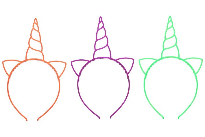 5 druhů ozdob - jednorožec, korunka, uši, zajíc, ryba