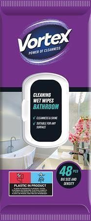 Vlhčené utěrky, koupelna, s uzávěrem, 48 ks, VORTEX