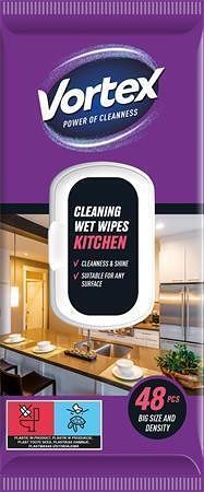 Vlhčené utěrky, kuchyně, s uzávěrem, 48 ks, VORTEX