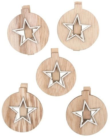 Vločka dřevěná na kolíčku 4,5 cm, 5 ks