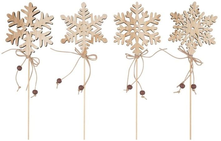 Vločka s korálky dřevěná 8 cm + špejle (4748)